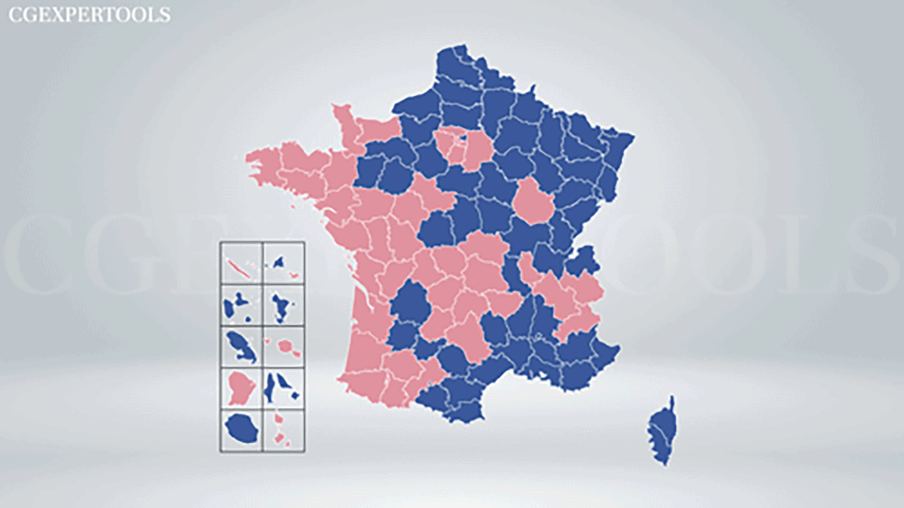 A Vizrt scene representing an electoral map with all departments for french presidential election results
